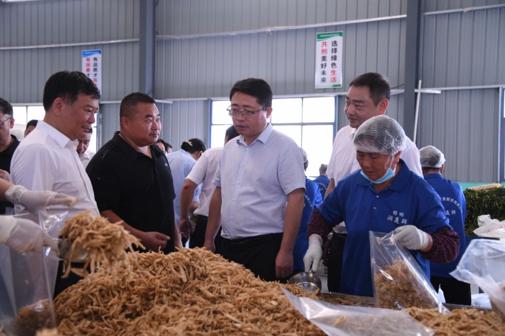 ▲刘世奇、张永久等在杨林寨乡蔬菜加工厂参观。