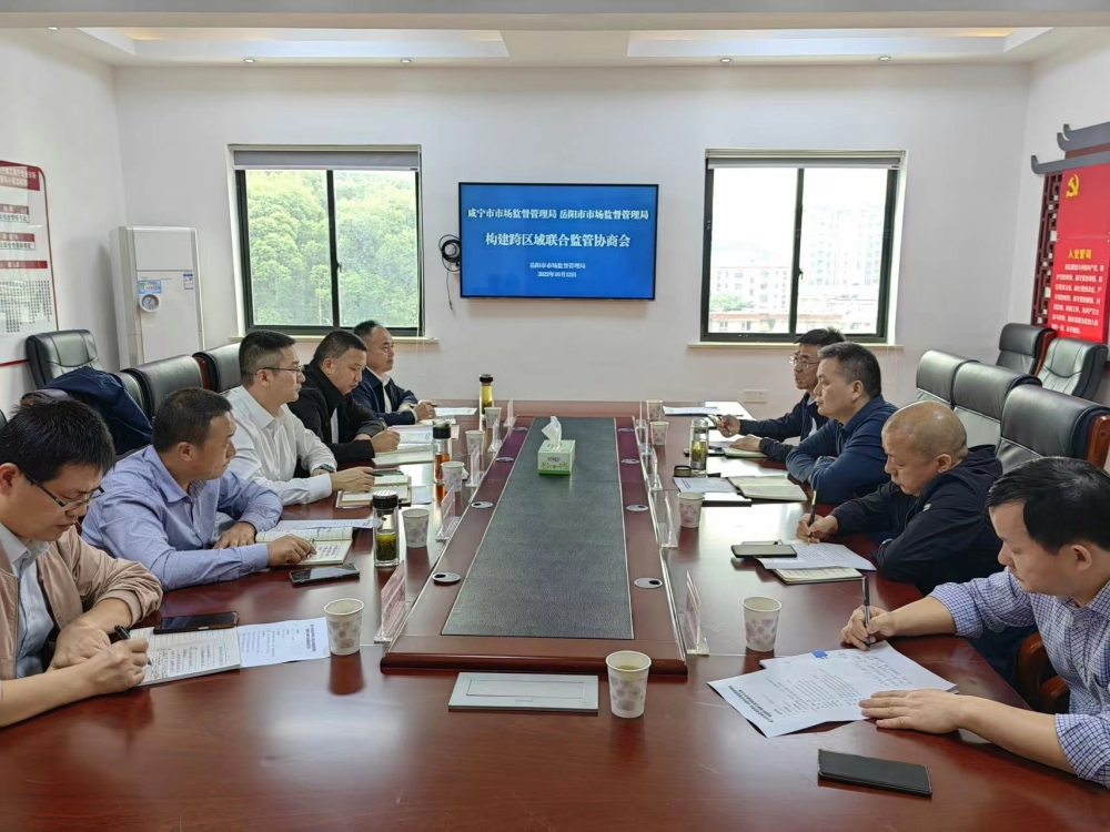 10月12日,湖北咸宁和湖南岳阳两市市场监管局跨区域联合监管协商会议在岳阳市市场监管局召开。进一步优化营商环境,促进“双随机、一公开”监管和信用监管工作多层次发展,拓展区域合作的广度深度。