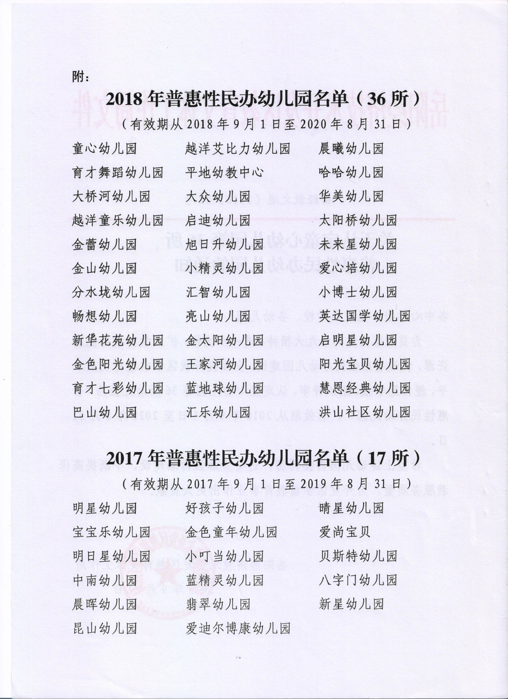 | 回复内容: | 网友您好: 信件已收悉,经开区教文局幼教办查阅了有关资料,找到了2018年普惠性民办幼儿园名单,名单如下图: 2.根据中央有关政策,从2020年起普惠性幼儿园,享受入园儿童人均500元每年的补助;中央、省级财政奖补2万元每年/每园。 |