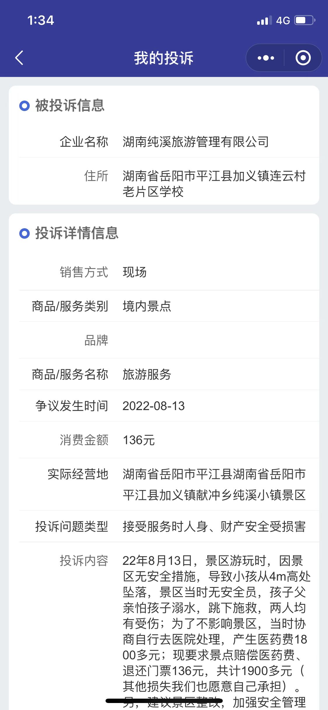 | 内容: | 您好,2022年8月13日,我们一家三口去岳阳纯溪小镇游玩,小孩根据景区政策不满1m免票,花费136元门票费用进入景区游玩(景区未有任何告知:保险收费情况且通过私人微信收取门票费用),游玩过程中因为景区安全漏洞,致使我爱人和小孩受伤产生1800元左右的医药费用,我们协商景区要求他们明确愿意承担的医药费用具体数额,景区一直回避回复具体费用;后寻求12315投诉,景区仍不正面回复赔付金额,加义镇市场监督局也认可景区的行为,说我们投诉无理,不提供医药费发票,导致景区没有办法申请保险赔付(但是我们8月底已经邮寄了发票的明细告知了景区,景区也收到了,依旧无法告知我们赔付金额)。然后我们又第二次12315网上投诉,并说明了我们的理由,市场监督局没有再联系我们直接完成了协调。 在这个过程中,首先,我们感受不到景区的管理水平和责任心,这么大的安全漏洞,落差5-6m的地方宽度不足40cm,安全设施装模作样,安全员在过程中没有解救也不帮助游客处理伤情,出了事故不以为意,反正有保险赔,但是又不明确告知游客保险的相关事项,出了事找保险,游客出了事是游客背时,游客自己垫付保险赔,不关景区的事;第二,我们也没有感受到平江加义的质量监督局对于安全问题和消费者提出的问题的重视,加义市场监督局的领导(不是办事员,是领导)的做法确实让我觉得无法理解,我深知投诉监督局不是维权的唯一途径,但是景区在安全措施不到位就开放营业,在没有告知游客收费费用组成的就收取对应费用,监督局的领导要我不要投诉的原因是因为无法协调景区、是认为景区做法对,还是有其他原因,让人迷惑。 今天,我写这封信的目的在于:说清楚事情真相,而不是和稀泥说来游玩的消费者不该反馈问题,如果是这样对待来旅游消费的普通人,那以后还有人敢来玩吗?医院费用1800元不是大事,但相关部门不要等到酿成灾祸的时候才意识到问题(景区开业没有安全审核,可以开业吗?安全网是漏空的看不到吗?)。不要和景区一起和稀泥,如果景区愿意赔愿意承担责任,事情发生后也不至于拖一个月还不解决,而且景区主体还是被执行人,希望把国家的自然资源承包给更有实力的旅游企业吧,也真的让游客安心。 附件1:12315反馈1.jpg 附件2:12315反馈2.jpg |